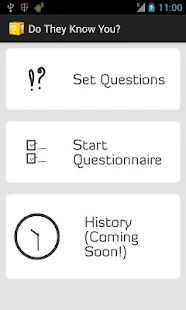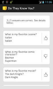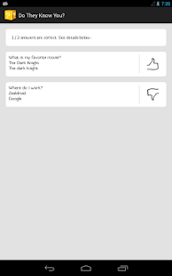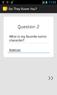 Do they know you? Really? Think again. We think our friends, our family, our partners know us very well bust often than not, they don't. This fun little app helps you find out who knows you the most. All you have to do is setup some questions about you, pass on the device to your friend and let him answer the questions!