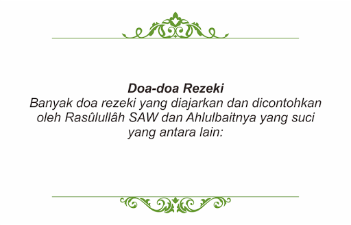 Kumpulan Doa untuk membantu membuka dan menambah Rezeki, semuanya atas ijin dan pertolongan Allah SWT.