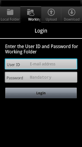 - 您必須先註冊成為Working Folder使用者。不能透過此應用程式進行使用者註冊。