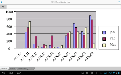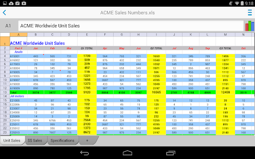 •Sheet To Go offers powerful data computation with support for 111 functions, cell, number & sheet formatting, row & column preferences, auto-fit options, freeze panes, sort, cut, copy, paste, undo, redo, charting, etc.