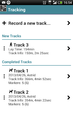 When your dog walks the track Dog Tracks will draw a new track on the map and automatically mark the markers your dog finds. You will see the track you walked and in real time follow your dog's track.