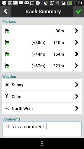 After you and your dog have walked the track you will see a map that shows both tracks, which marker your dog has found, track length and time. You can log weather and wind conditions and also write your own comments.