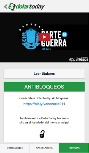 ¿Quieres conocer la realidad económica y política de Venezuela sin ningún tipo de censura? Esta aplicación actualiza la información del precio del dólar en Venezuela según se cotiza en la frontera. También ofrece acceso sin restricciones a lo ultimo en noticias de política y actualidad. La aplicación te permite obtener toda la información que necesitas de forma clara, simple y precisa sin ningún tipo de censura por parte del gobierno.