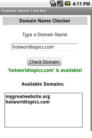 Domain Name Checker allows android users to check the status of a domain name so they can find out if it is for sale or not.