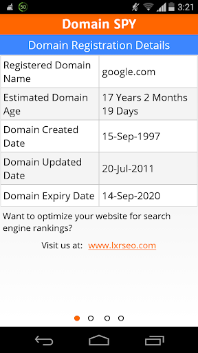 Website domain information is one of the key components of effective SEO. A website that's been around longer will have a higher reputation in the eyes of Google. Our Free Domain SPY Tool will allow you to quickly find out the age of any website, including your top competitors. Simply enter the domain name and our tool will pull up all the essential Whois details for a particular domain - Age of the website, Domain owner's information and Administrative and Technical contact details – within seconds!