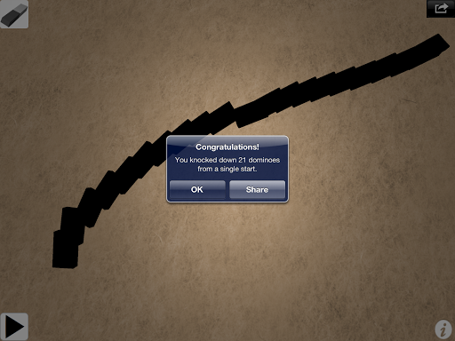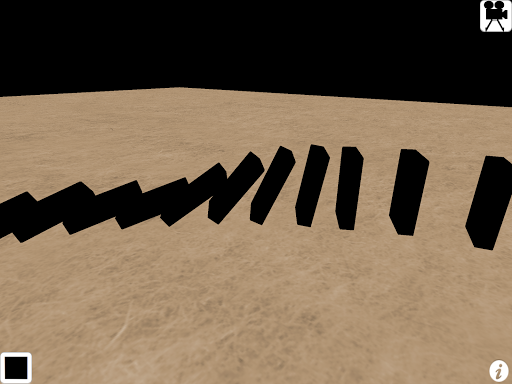 Drag your finger to easily create streams of dominos. Push the first domino to knock it over. Watch the chain reaction it creates! Select from several camera angles to follow the falling dominoes.