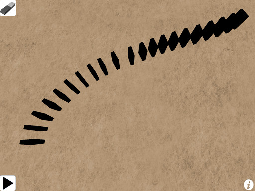 Easily restart, erase, and edit domino streams. Use "Y" intersections to spawn multiple streams. Dominoes automatically stand back up between attempts.
