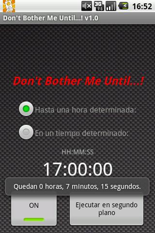 Don't Bother Me Until...! has been conceived for this task. We just have to choose between the two operational modes (until a specified time or during a specified time) and turn on the program. It will manage to get the sound back to our cell phone at the right time.