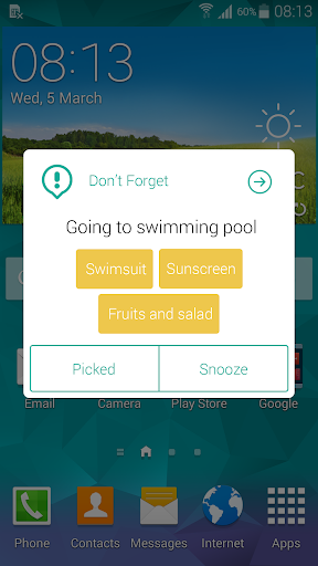 Don't Forget is the best app to keep you aware of important things in order to prevent you from forgetting them, losing them and/or leaving them behind. Many times we are in a hassle and have things to do and places to go. Important items such as documents for your next meeting, to a calculator for your next exam, or even your sunglasses are essential and can delay your schedule when you tend to focus on something else. This app consists of 3 different methods that allows you to stay updated and in control of your reminders and to-do lists. Whether it is through GPS (marking a perimeter), a Pedometer; by recording the steps you are taking further away from an object; or simply a timer that counts down a time to remind you of a particular object or duty to need to fulfill!