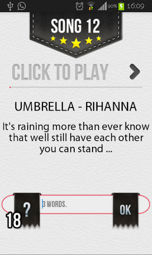 Don´t forget is a game based on tv show where you'll have to guess the rest of the song, you will hear part of the song and will be able to read that part´s lyric. You'll have to complete the lyrics.