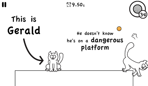 Gerald is a Blind Cat that doesn't know he's on a dangerous platform. Keep him alive by feeding him food.