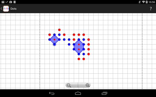 Dots is an abstract strategy game, generally played by two (or more) people on a sheet of squared paper. At first glance, the rules of this game can seem similar to those of Go. But there are some major differences, resulting in two completely different games. Instead of territory control, as in Go, the primary target of dots is capturing enemy dots by surrounding them with a continuous line of one's own dots. Once surrounded, dots are not playable.