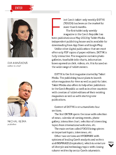 Dotyk in English is a english version of czech weekly magazine Dotyk.
