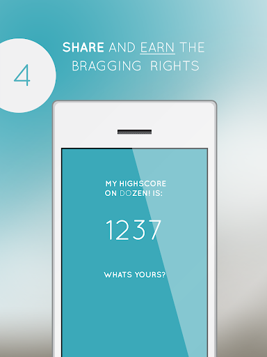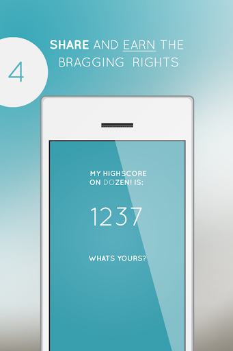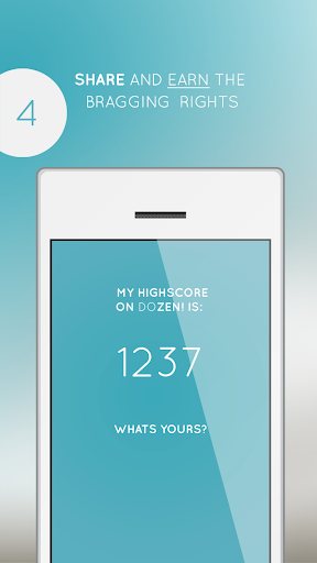 Sharing your score is of course easy as well. Just hit the share button at the end of a play to share your skills on Facebook, Twitter and email. If you just want to share a link to Dozen, you can use the share button in the menu (giving you the same options to share on Facebook, Twitter and email)