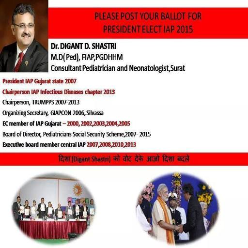 Dr.Digant Shastri is a renowned pediatrician and neonatologist from Surat. He is one of the best known academicians of the country.He is contesting for the post of IAP President 2014.