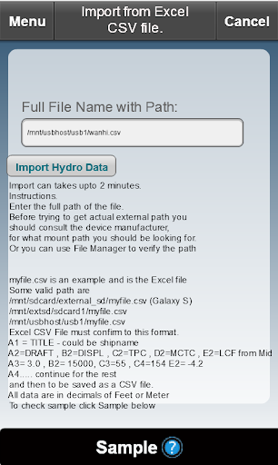 Just slip in the SD Card , USB with the CSV and tap Import while on Hydrostatic Screen.