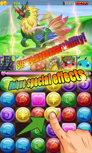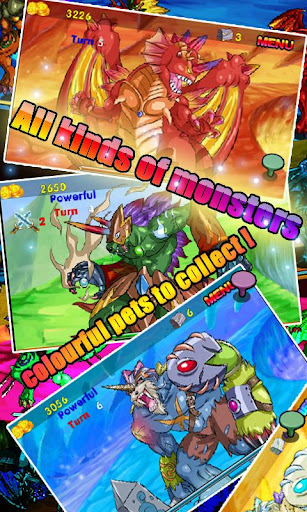 - Players can confront evil monsters with their team of pets Match-3 style. Clear different colored gems to increase attacks of pets with respective attributes.