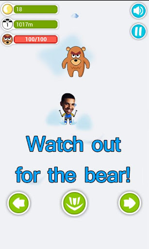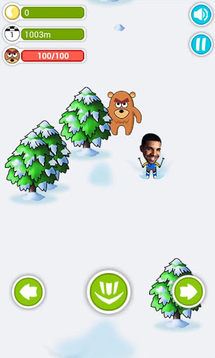Avoiding the pine trees shouldn't be hard for cool Drake, he's got the attitude to avoid any trouble. But watch out for the grizzly coming after him! This &#@% mother bear can slap even the coolest of all dudes with its giant paws! So, make sure Drake picks up the coffee cups on the way, that will give him enough energy to make a dash... and beat the rap! Or you can trick the bear into smashing its nose into a tree... that will calm the mean &#@% beast for a while!