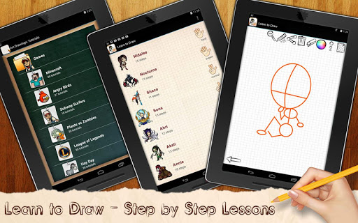 • Choose what to draw from huge collection of pictures and sketches: Nidalee, Caitlyn, Ashe, Lulu!