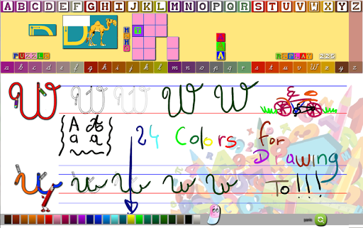 This application does not simply tell them the direction of drawing letters, it shows them in the drawing, while emitting the sound that means.