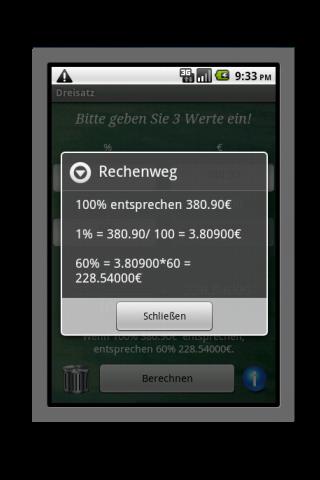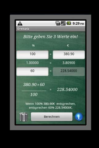 Momentan wird nur der direkte proportionale Dreisatz berechnet, in einem Update folg die Berechnung des indirekten proportionalen Dreisatzes.