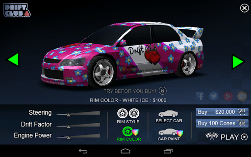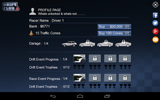 The game also allows you to post screenshots on Facebook, Twitter, and Google plus as well as the option to email. This allows you to keep your family and friends update with your game progress, cars you have bought and customized and of course your drifting and racing successes as you share your replay screenshots!