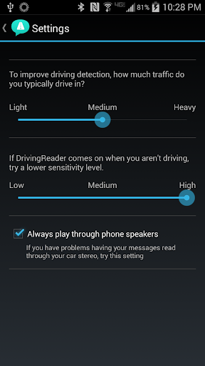 Driving Reader automatically detects when you're driving and reads incoming text messages out loud with text-to-speech. We even let you know when it's ready to read incoming messages by putting a notification icon on top of your screen.
