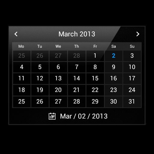 A stylish calendar widget that shows one month plus the current date. It's possible to flip backwards and forwards through the months with the arrow buttons and to jump back to the current month with the calendar button.
