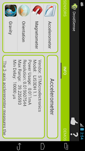 accelerometer, magnetometer, gyroscope, orientation, light, pressure, thermometer, proximity, gravity, linear acceleration, rotation, relative humidity