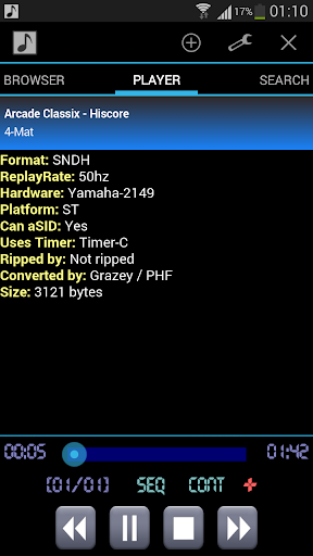 Droidsound-E (Droidsound-Enhanced) is a music player that can play a wide selection of computer and console music formats. It is a continuation to original Droidsound that was released in January 2013. We (the original author and I) agreed to change the name to avoid confusion.