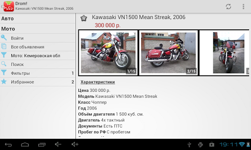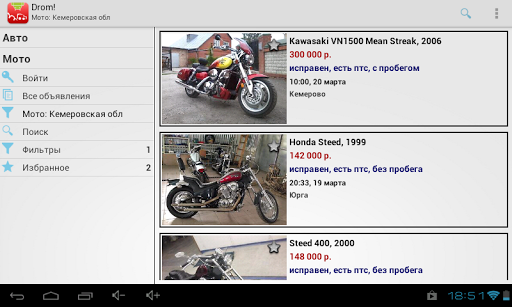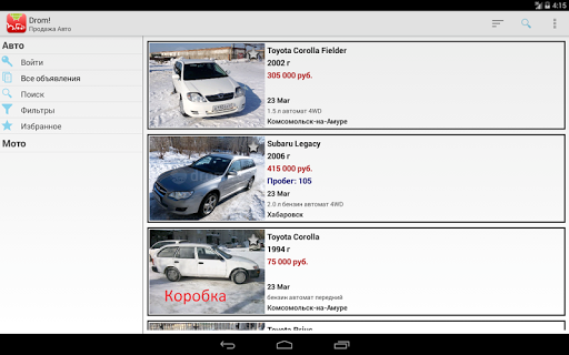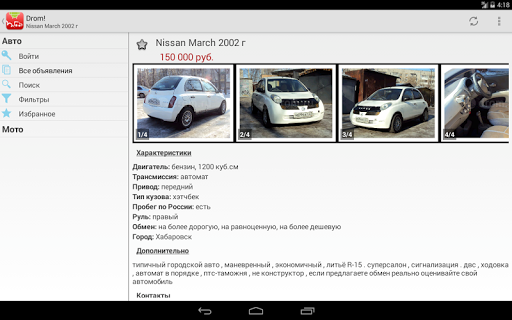 В настоящий момент реализованы разделы "Авто" и "Мото"