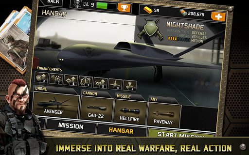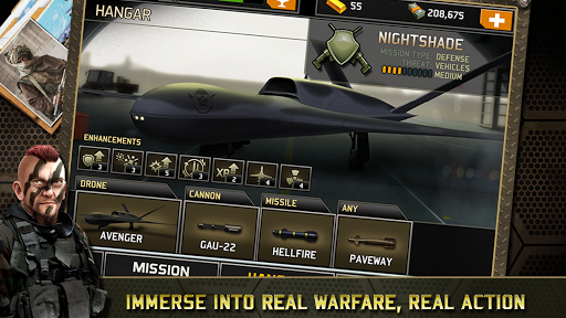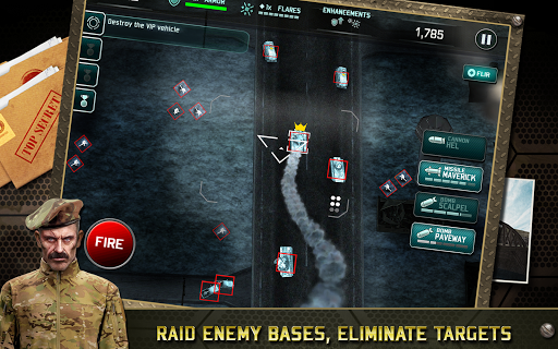 Set in the heart of covert aerial warfare, with real world inspired immersive environments and the original FLIR (Forward looking Infrared) camera, the game puts you in the hot seat of a special ops operator. You must work your way up the chain of command over a series of covert missions, using ultra high tech equipment, strategy & skills and superior firepower to lay waste to the enemies of the state, all at the tap of your fingertips!