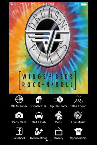 Drums N Flats App is filled with useful functions. We have a Tip Calculator that adds a selected percentage to your bill and divides the total between the number of dinners. link to our Facebook fan page and send us a photo of your great time at Drums N Flats. Read QR codes with our QR Scanner. Keep track of what is going on at Drums N Flats, Entertainment and Specials. Don't forget to check out our fantastic menu. Download and Enjoy !