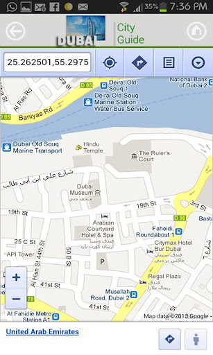 Install this FREE cityguide app on your smart phone which helps you to find different places in Dubai near by your location using GPS as Restaurants,Hotels,Banks,Hospitals,... etc and each place will have contact information and address ,, you can navigate to that location very easily using this App.