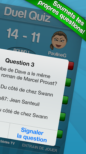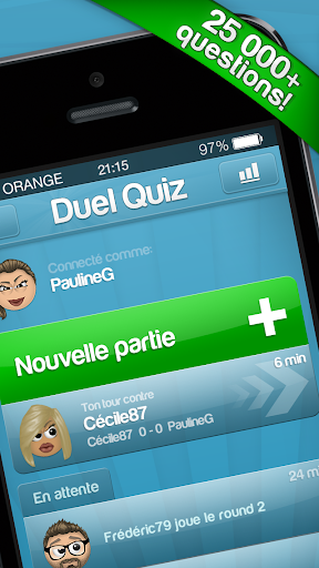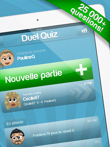 Si tu aimes jouer à des quiz, tu vas adorer Duel Quiz - un jeu social coloré avec plus de 25 000 questions et avec des super sons et des animations.
