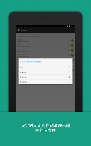 Dumpster的工作方式就跟您的mac, linux或者windows电脑桌面上的回收站一样。Dumpster的恢复功能是完美的云端备份工具的补充(Dropbox,Google Drive, Microsoft OneDrive)。有了它,您就没有了不断需要备份数据的麻烦。Dumpster让您能够恢复不小心删除的文件,包括图片,vids,音频,pdf,zip,mp3,mp4,ppt,doc,avi,mpg,rar以及其他常见的文件类型。