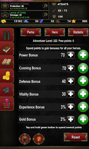 - Special "Adventure levels". Gain this levels give you special points that you can spend on perks. If your hero die you wont lost your Adventure levels.
