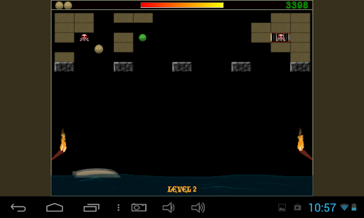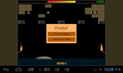 These little balls are behind bars in the game. Bounce your ball against them to release them. Once released, Green ball friends, can help you break more bricks and can be deflected off your row boat. However, if you miss them they can disappear beyond the bottom of the screen. Each brick is worth 22 points and a released ball friend is worth 500 points and an extra life. Blue ball friends, from level 6 onwards, can destroy the Death icons but cannot be controlled by your boat and do not destroy bricks.