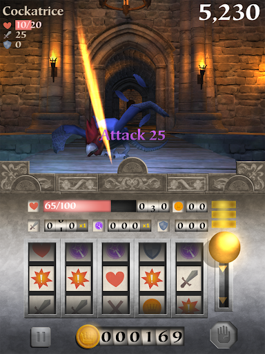Treasure lies deep in the dungeon—or so the legends say. Many adventurers have lost their lives to the weird, ferocious creatures that dwell beyond those forbidding walls, but you have a secret weapon: your trusty 23-calibre double-bladed combat-certified Slot Machine. Hit the jackpot to lay down devastating attacks. Go for broke with swords and enchantments, spin the reels to wield your shield, and lock in combos to win back life. But be careful: the denizens of the dungeon don’t take kindly to strangers, and the deeper you delve, the harder they hit.