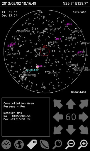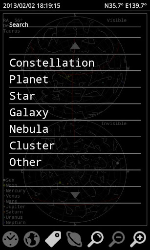 2つの円盤からなる星座早見盤です。地平線上の見える星座と、地平線下の見えない星座を両方区別して表示できます。赤道座標を指定すると拡大された星図を表示することもできます。「Duo」はギリシャ語で「2」を意味します。つまり、地平線を境にした2つの半球を同時に表示できることがこの星座早見盤の特徴です。