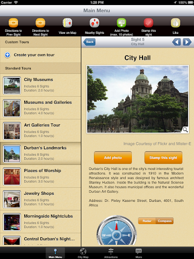 This handy application presents you several self-guided walking tours to see the best of the Durban, South Africa, and it comes with detailed tour route maps and powerful navigation features to guide you from one sight to the next. No need to hop on a tour bus or join a tour group; now you can explore all of the best attractions on your own, at your own pace, and at a cost that is only a fraction of what you would normally pay for a guided tour.