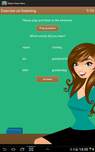 Dutch Class contains a complete offline Dutch course, offering both written content and audio, together with interactive verb, vocabulary, grammar and listening exercises.
