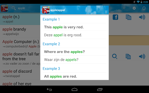 The best Dutch English Dictionary app is now on Android phone and tablet. It covers over 130,000 words and phrases of the contemporary Dutch language, along with example sentences, audio pronunciations, fastest search speed, flexible search methods, and more …