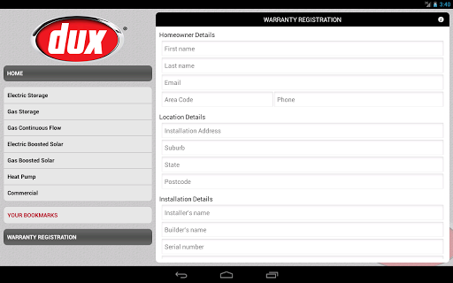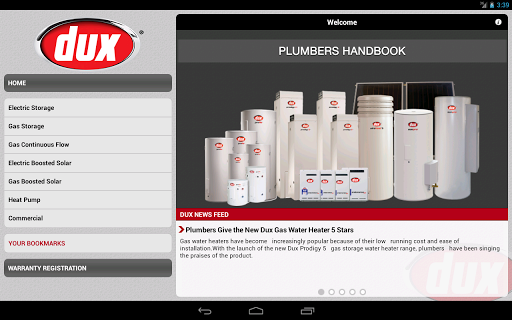 The Dux Plumbers Handbook is your complete guide to the entire range of Dux water heaters. This app is ideal of accessing information quickly, while you're on the go.