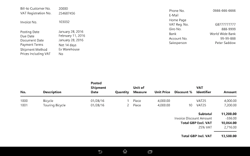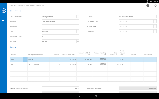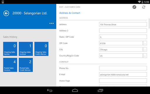 Make smart decisions based on the latest business data and get real work done after hours, at home or on the go with Microsoft Dynamics NAV for Android. This is the perfect companion for service engineers, sales field organizations, executives and decision-makers, or anyone in your organization who wants access to Dynamics NAV from a touch enabled mobile device. Get visibility into every angle of your business using the Role Center. Tap to drill into details about your customers, vendors, inventory, or any other data from Dynamics NAV. Quickly create invoices and quotes, and email them with just a few taps.