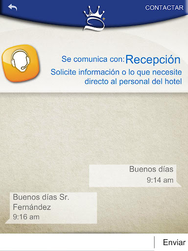 Ahora podrá, en tiempo real, mediante mensajería instantánea solicitar al personal del Hotel la información que necesite o los servicios que desee de forma cómoda y práctica.
