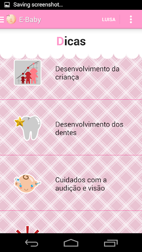 Dicas: Neste local os pais encontrarão dicas de várias categorias como alimentação, saúde, desenvolvimento, dentre outros.