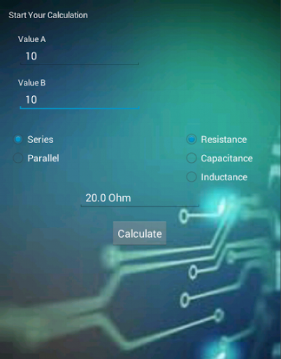 A calculator that can calculate the basic components in elctronics such as resistor, capacitor and inductor.