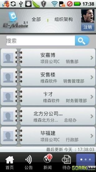 E-Mobile是由上海泛微网络科技股份有限公司发布的一个基于Android客户端的移动办公产品。 通过此客户端,用户可以在Android手机及androidpad上查看和处理来自于泛微协同办公产品中工作流、新闻、联系人和其他的信息。 此应用免费用于泛微协同办公平台。