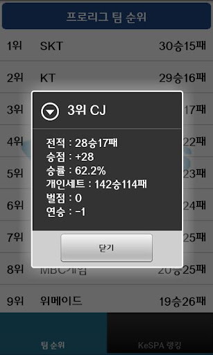 2. 프로게임단과 KeSPA 랭킹을 보여줍니다.